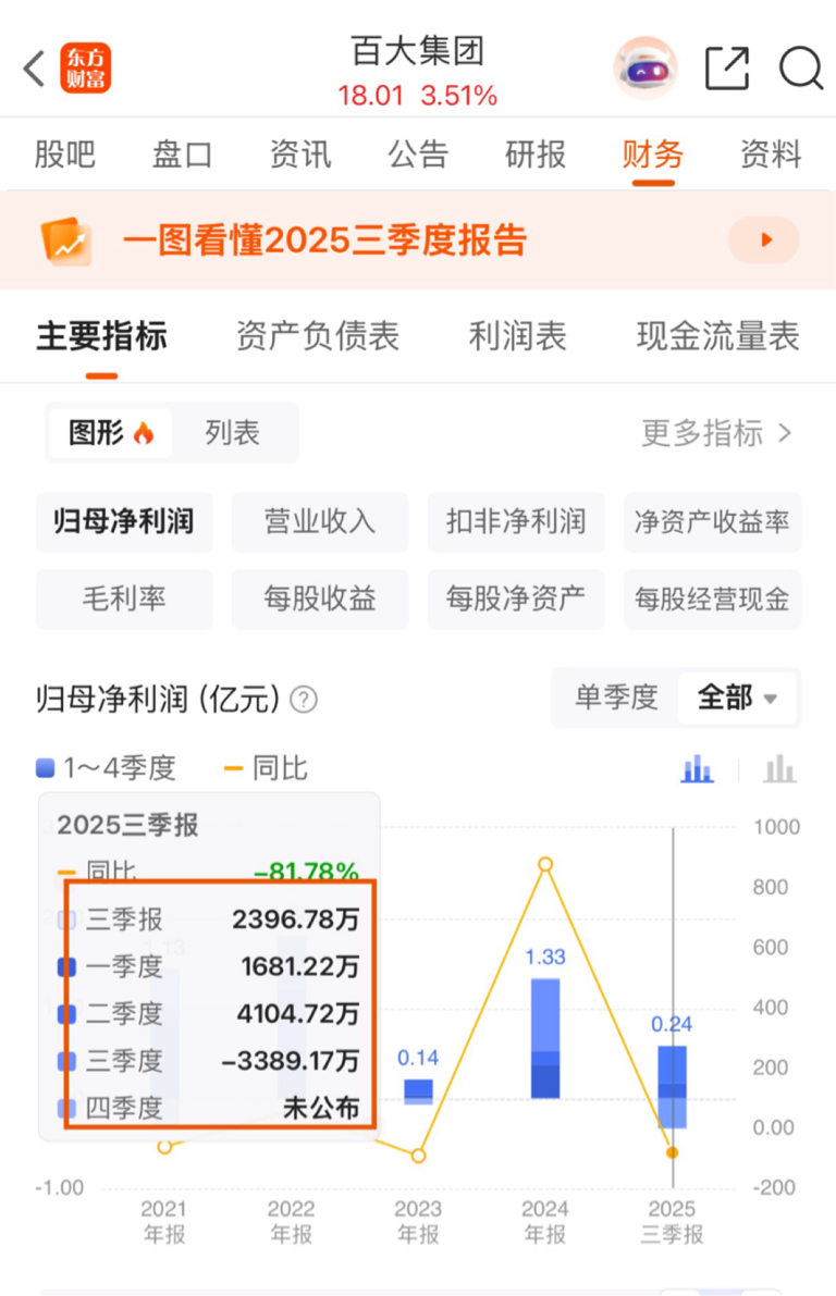 $百大集团(SH600865)$ 连续多年营收低于三亿,今年利润还有2300多万,四季度若是亏损超2400万年报一出就ST了,现在资金在年报出来之前拉伸跑路,散户不要去接盘,去买银座股份和杭州解百,低位的消费股,没有ST风险。三季度亏损3000多万,四季度亏个2000多万概率还是有的。