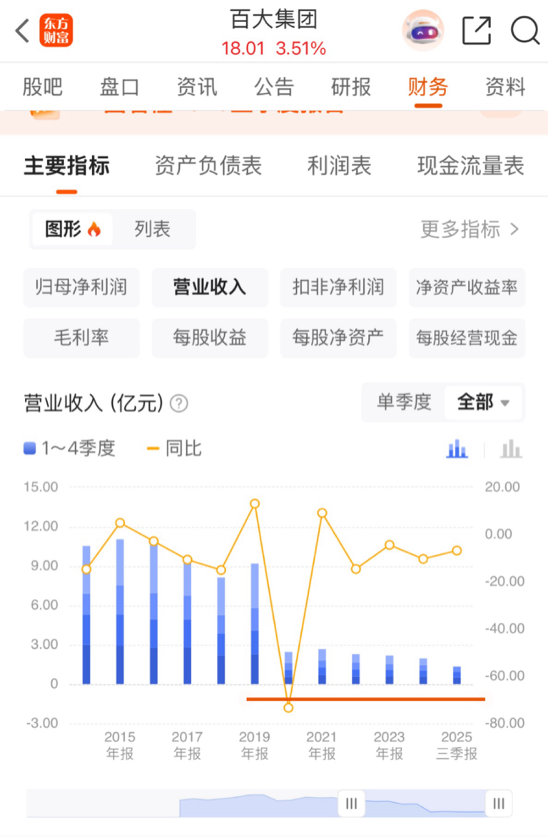 $百大集团(SH600865)$ 你们自己看嘛,连续五年营收低于三亿,今年营收突破3亿不大可能,三季度亏损3000多万,四季度若是外亏个3000多万明年就ST了哦