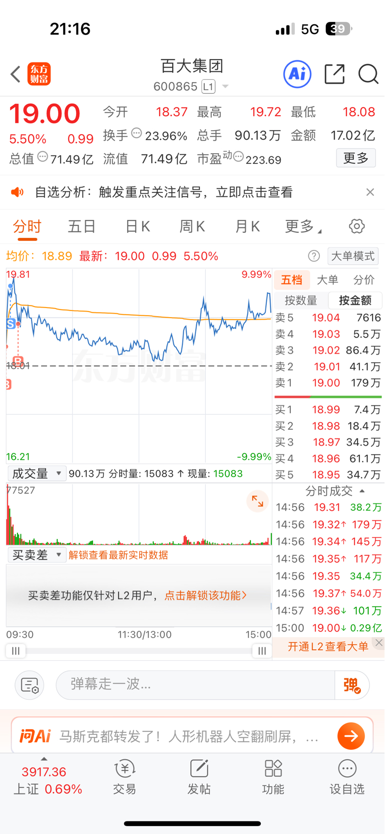 $百大集团(SH600865)$ 管它异动不异动的,天天都是弱不弱强不强的被人牵着走,什么时候主动了什么时候满仓干,所有的卡异动都是耍流氓