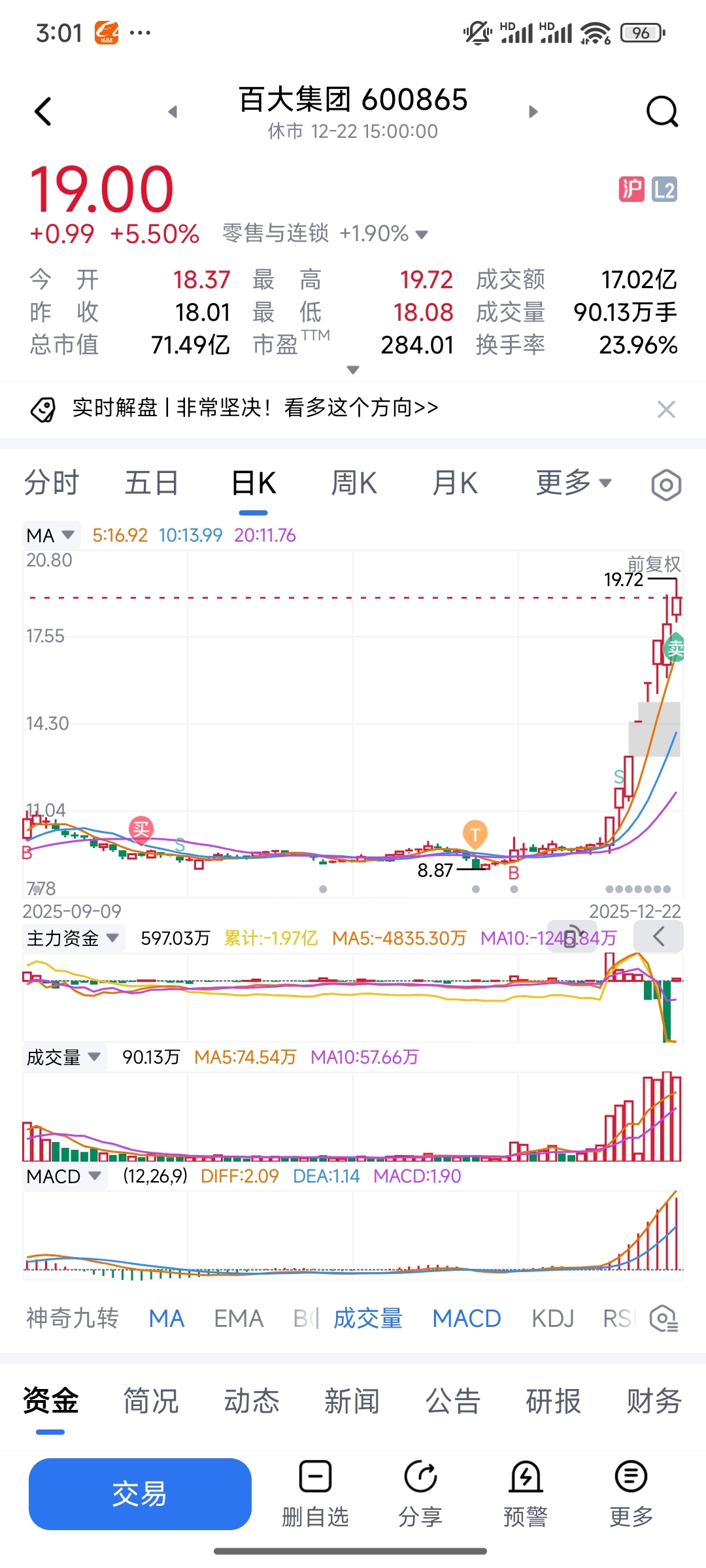 两个多月的成绩,明知此股还有涨,但耐不住庄的强烈震仓,心很累,收盘时出了!好好休