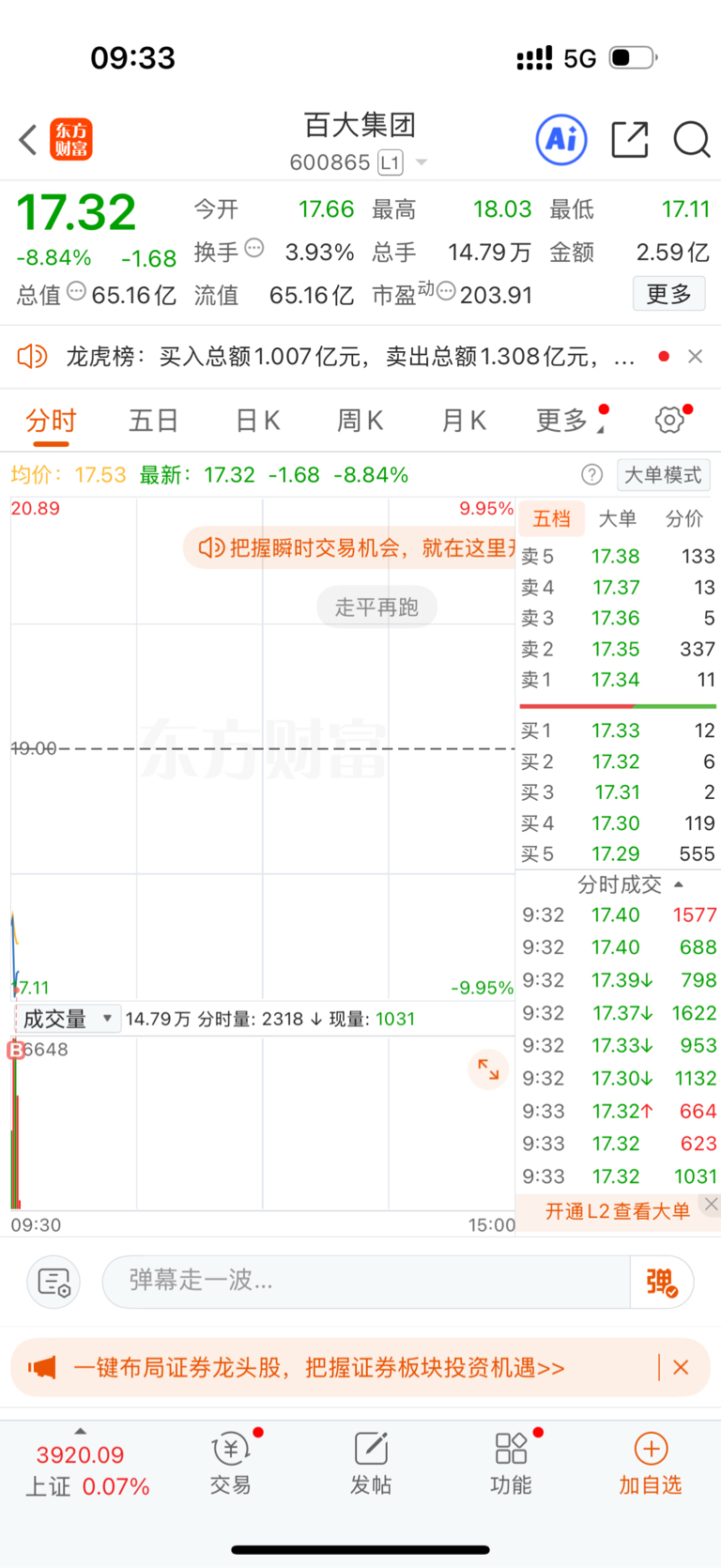 17.24选择抄底$百大集团(SH600865)$ #强势机会# #实盘记录# #投资干货# #投资随笔#