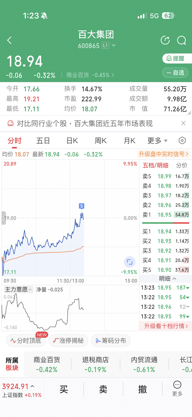 $百大集团(SH600865)$ 这小半天拿着有点小煎熬