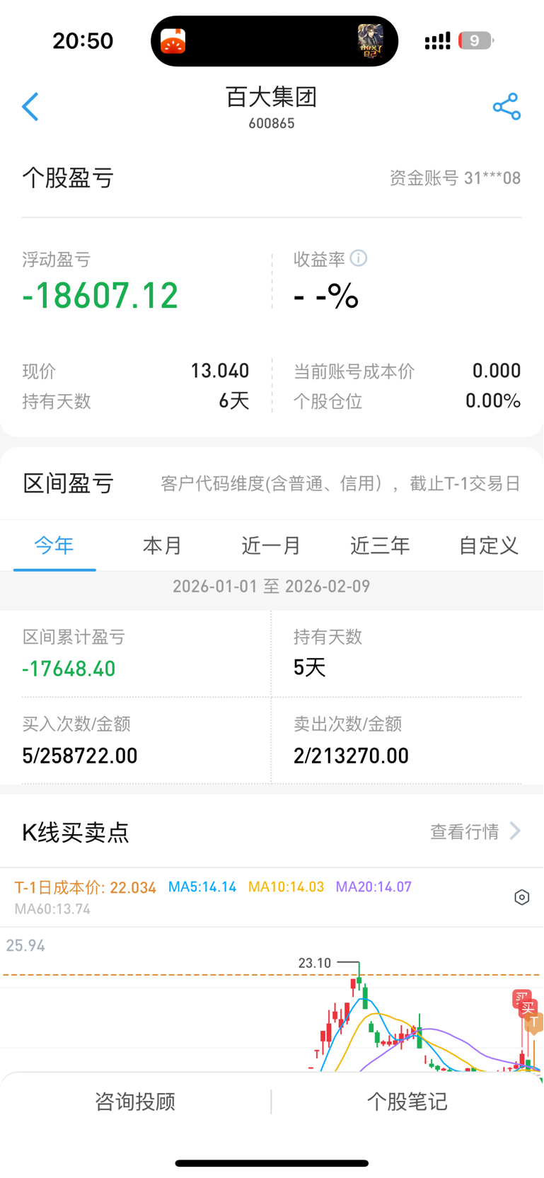 情况不对直接割。亏1.8。为我的错误买单
