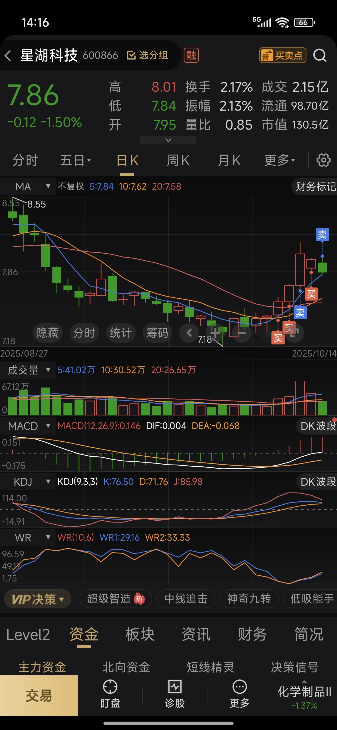 $星湖科技(SH600866)$ 兄弟们,暂时到顶了,一般会跌三天,之后再看吧