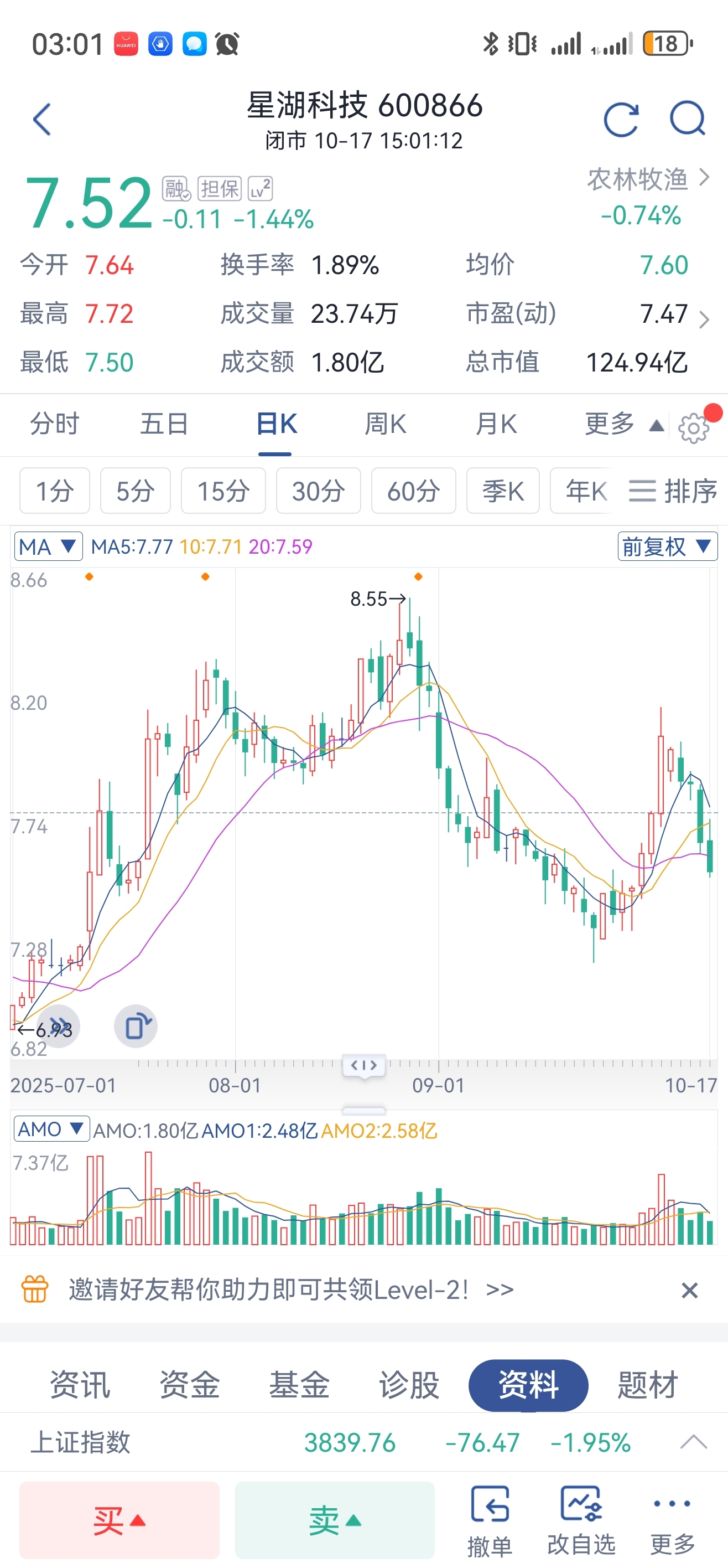 $星湖科技(SH600866)$ 这玩意儿,涨的时候不是科技,跌起来就跟科技一样狠