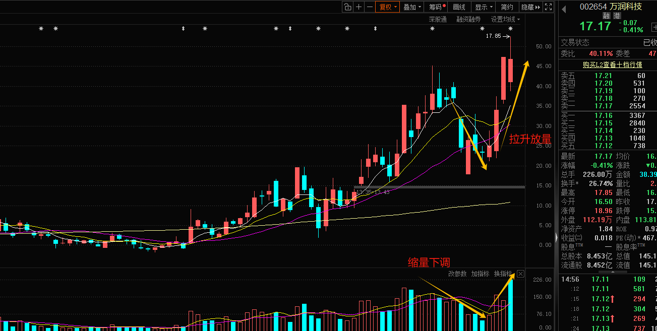 万润科技:存储概念,子公司主要聚焦半导体的山村封装和山村测试等,昨天的榜单出来之后今天就注定有分歧,原本想的是会高开然后分歧,但是集合竞价最后几秒钟直接压到了负4.3%的位置,所以当时只能等,随后分时几次都到这个位置下不去了,那么就直接按计划拿了,下午有修复,也短期新高了,明天看看能不能低开之后继续冲高。前方19.8的大新高。看看这里能不能一波突破,当然庄哥可能混个冲高就走了。
