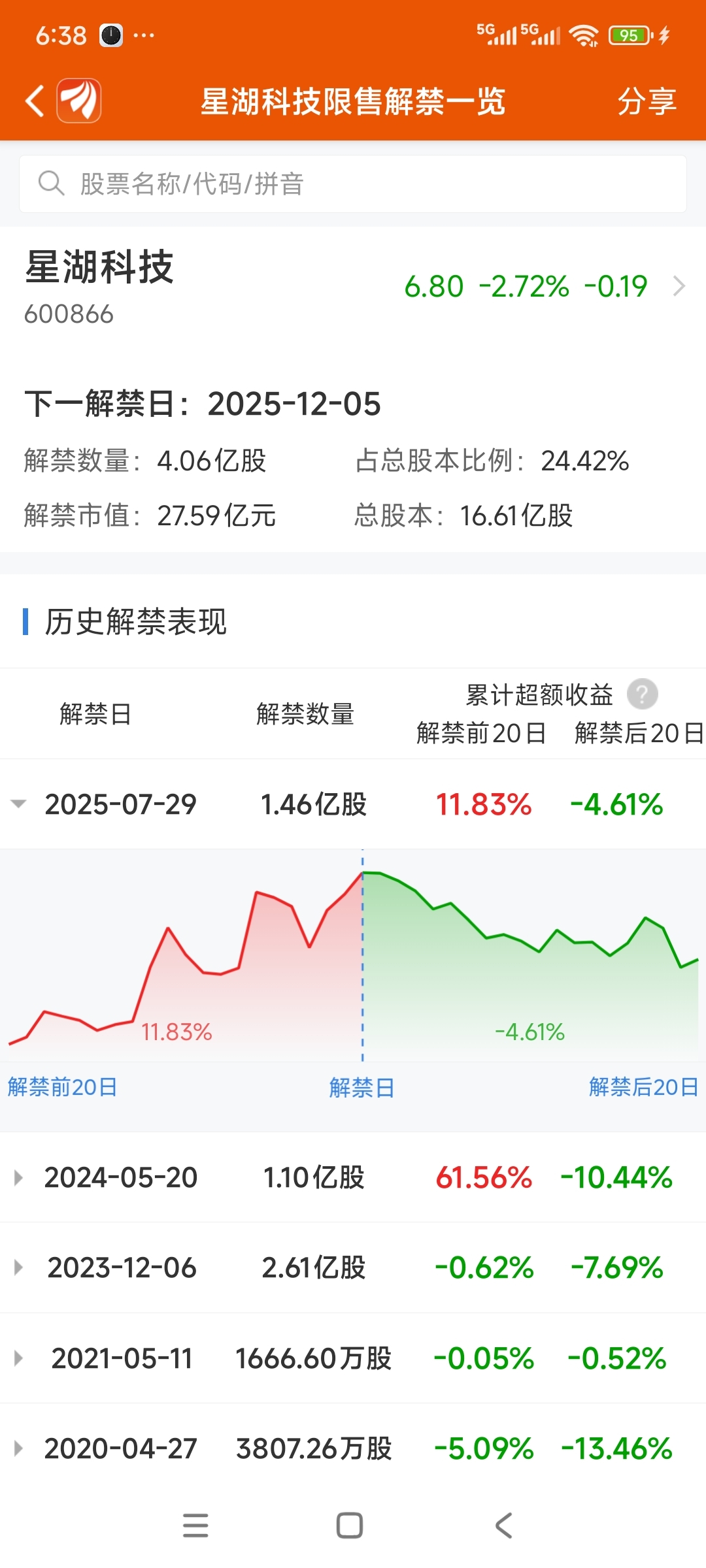以下是星湖科技7月26日解禁1.49亿股后,股价走势截图。可以参考以后再减持!!