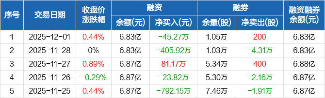 星湖科技:融资净偿还45.27万元,融资余额6.83亿元(12-01)