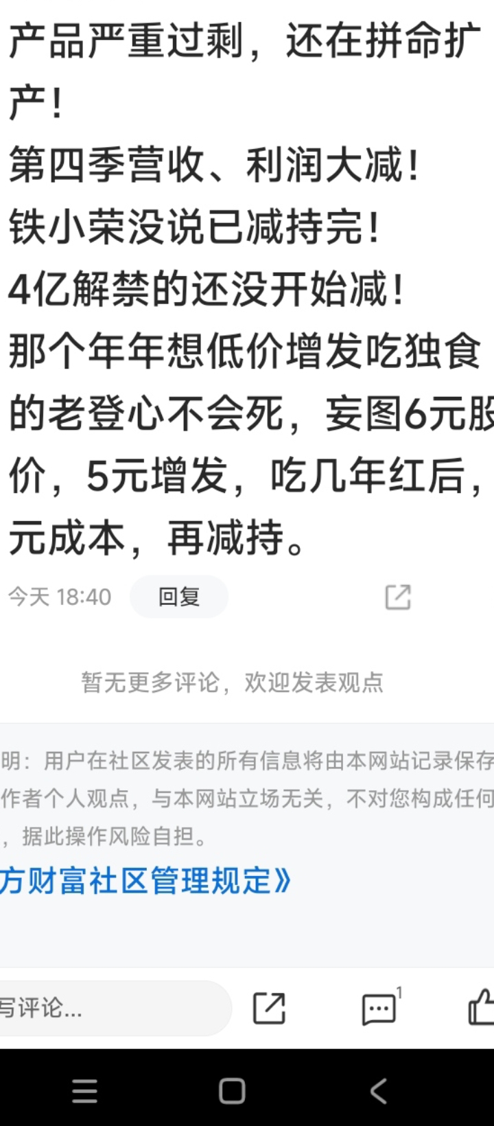 温馨提示: 1.根据《证券法》规定,禁止编造、传播虚假信息或者误导性信息,扰乱证券市场;2.用户在本社区发表的所有资料、言论等仅代表个人观点,与本网站立场无关,不对您构成任何投资建议。用户应基于自己的独立判断,自行决定证券投资并承担相应风险。《东方财富社区管理规定》