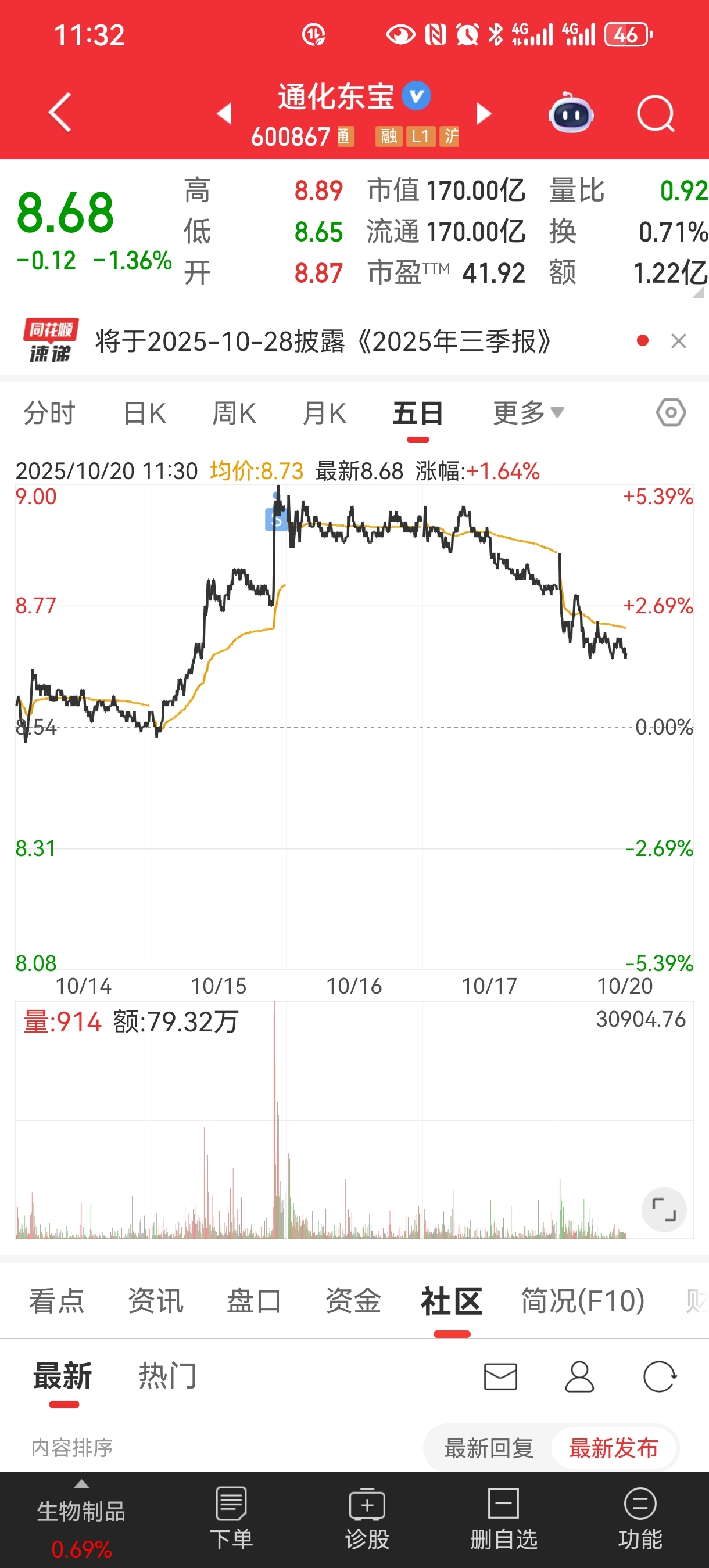 $通化东宝(SH600867)$ 8.5的本,上次9没卖,前几天9全清了