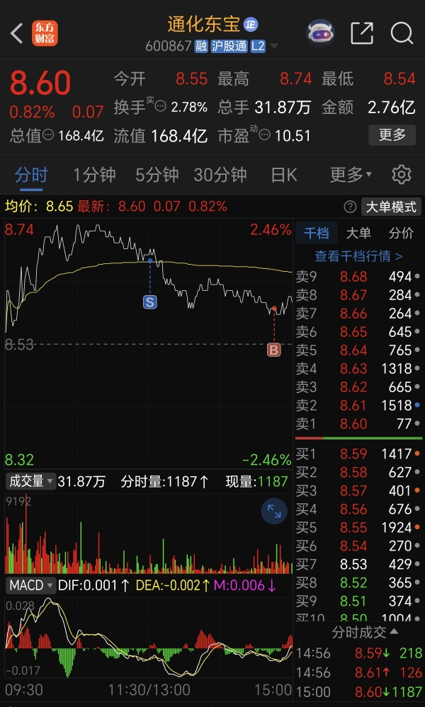 $通化东宝(SH600867)$