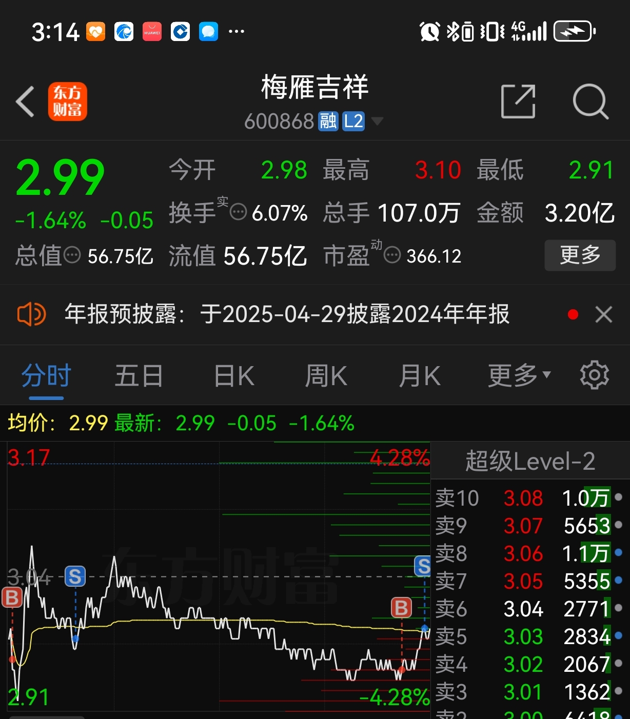 $梅雁吉祥(SH600868)$ 每天都赚几分钱,我陪主力过大节。