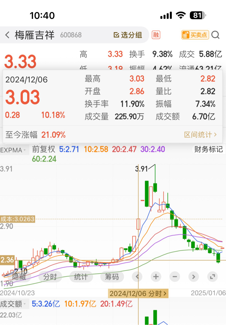 $梅雁吉祥(SH600868)$ 不会和去年12月一样吧?连涨停价,走势都一样