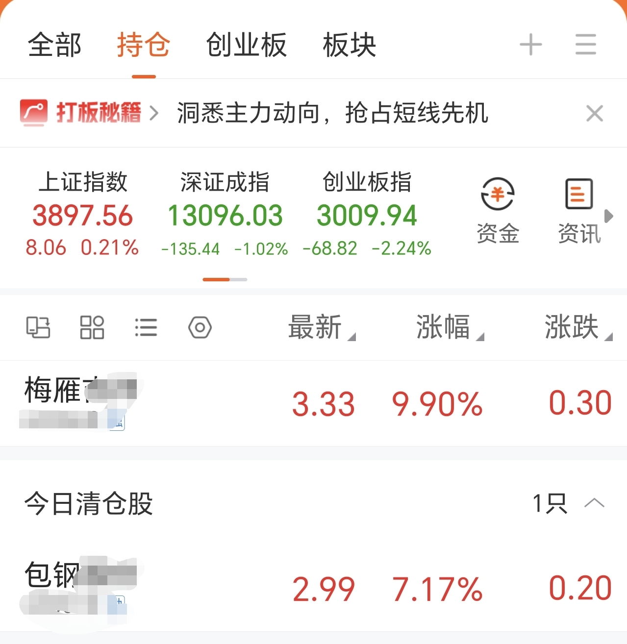 昨天清空了江丰电子,通过AI的指引入了梅雁吉祥,今天条件单炸板出了包钢股份,明天