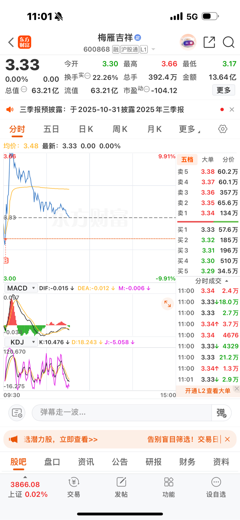 $梅雁吉祥(SH600868)$ 这个点买都赚不了