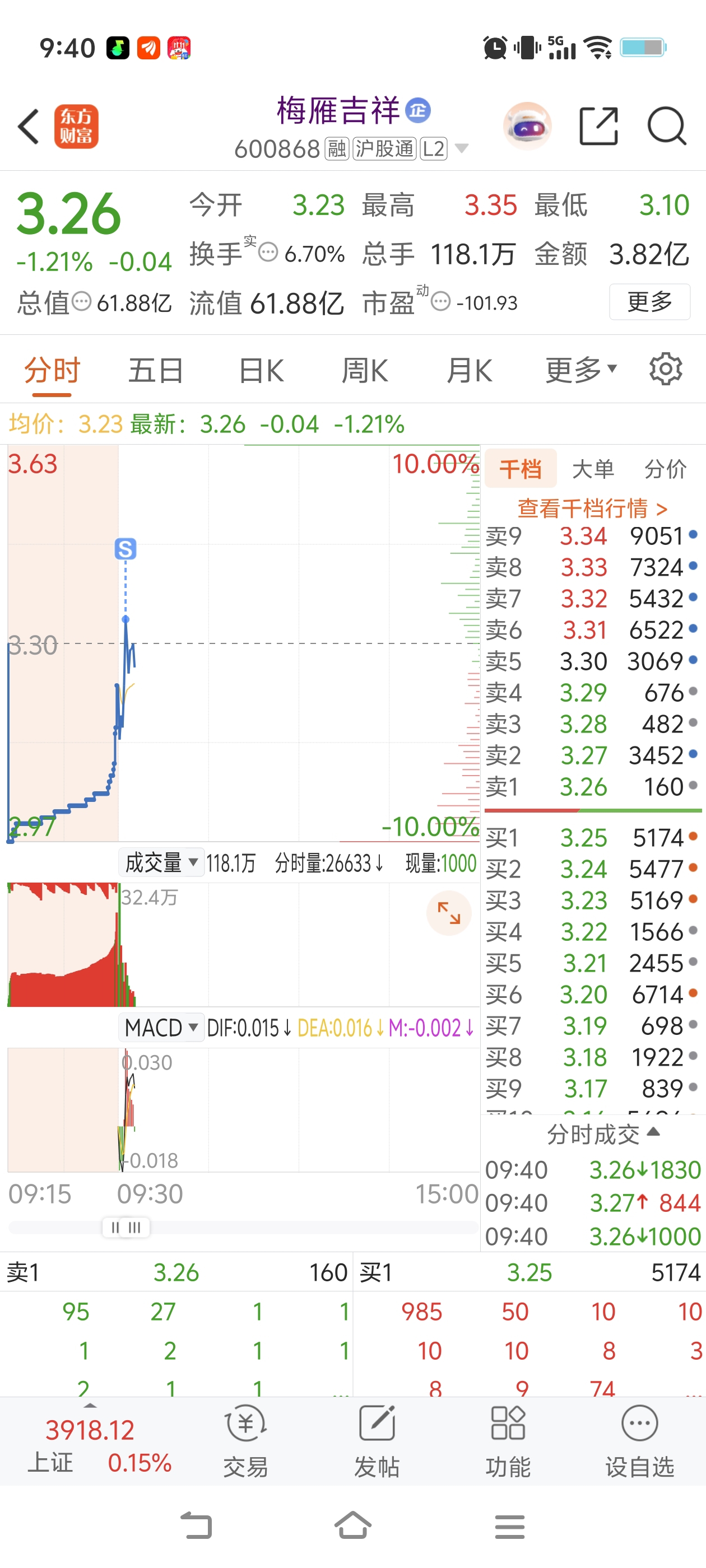 $梅雁吉祥(SH600868)$ 挣点得了,昨天抄的底