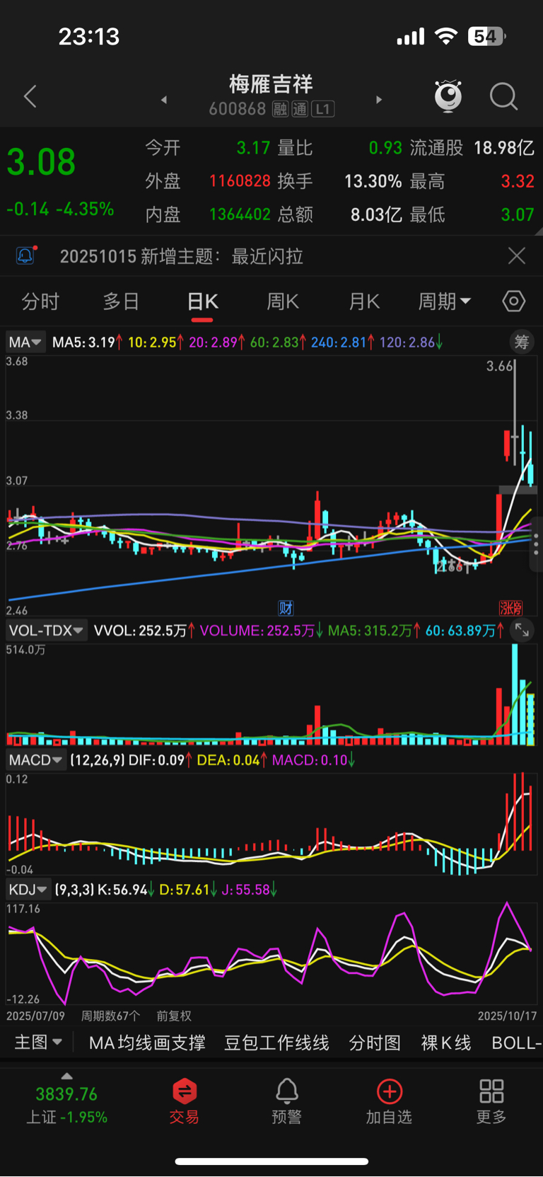 $梅雁吉祥(SH600868)$ 梅雁吉祥会不会3.05左右有支撑呢,大神出来指点一下