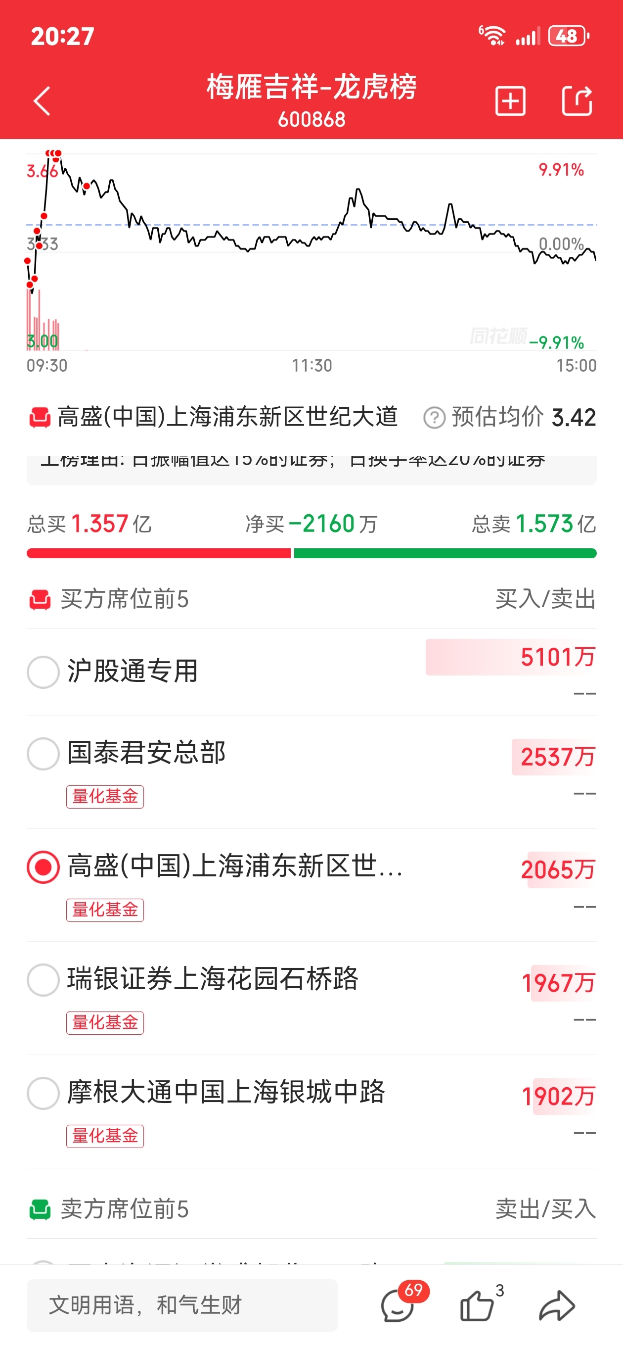 $梅雁吉祥(SH600868)$ 我想问问,高盛,摩根大通,走了没???
