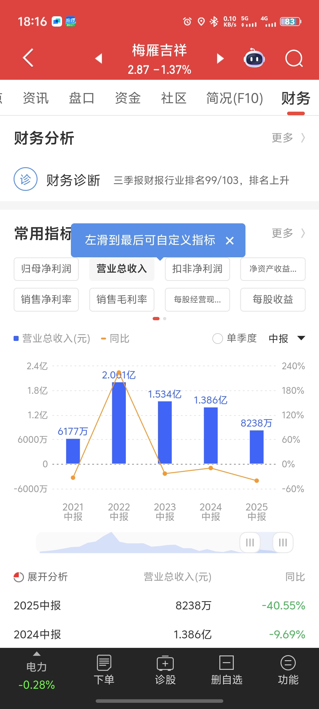 $梅雁吉祥(SH600868)$ 半年报是8000多万,也就是说第三季度有1.3亿。按往年来看,第四季度都是一亿多,所以根本不用担心st。利空落地是利好