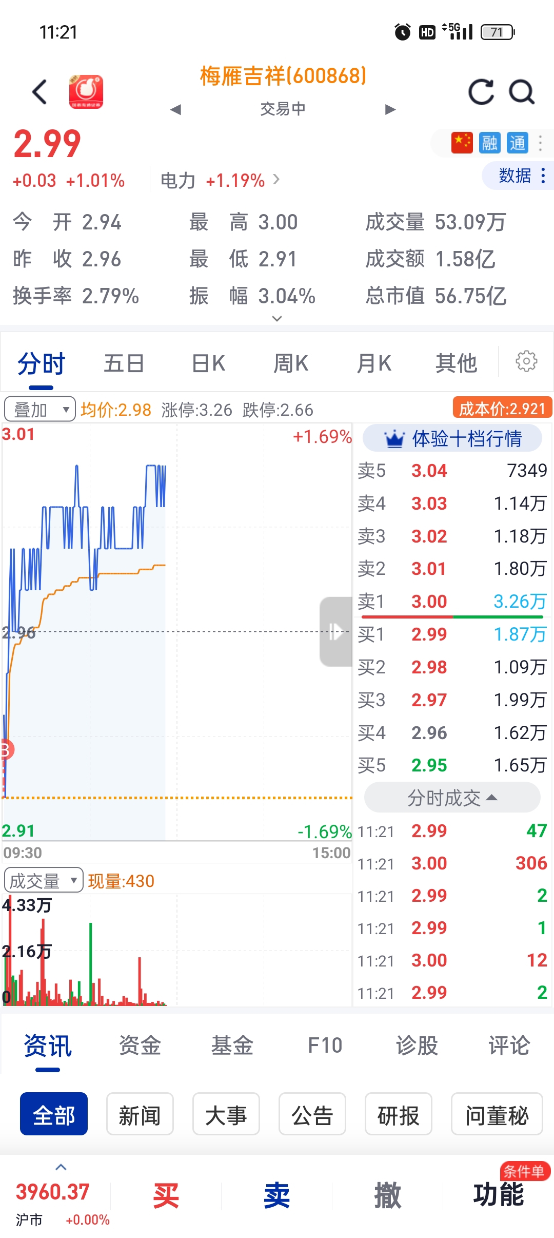 $梅雁吉祥(SH600868)$ 这次总算被我逮到了
