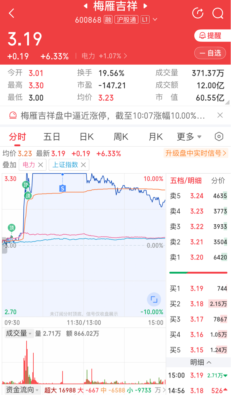 $梅雁吉祥(SH600868)$ 这次我学乖了,板上跑了