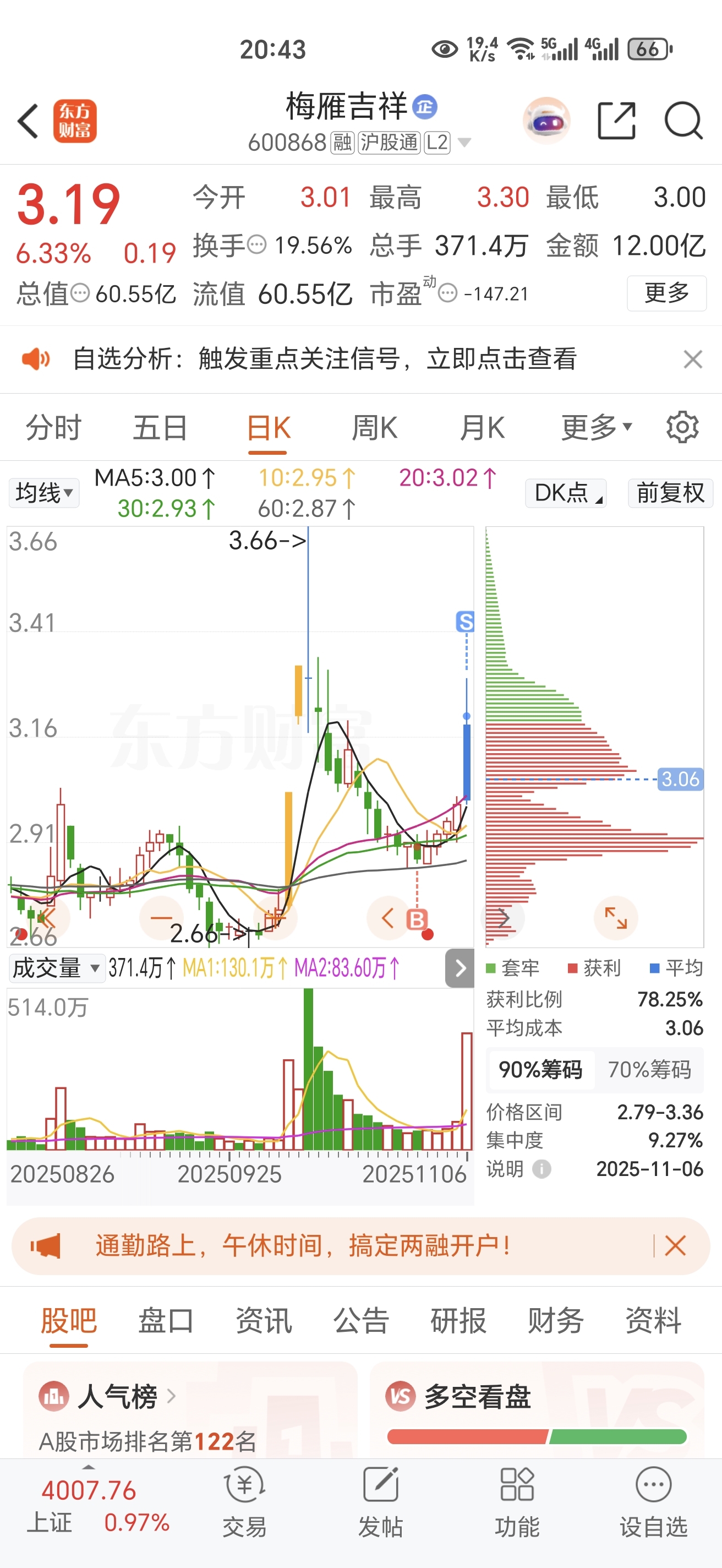 $梅雁吉祥(SH600868)$ 一直封不上,感觉要回调,清仓走人,留下发财。