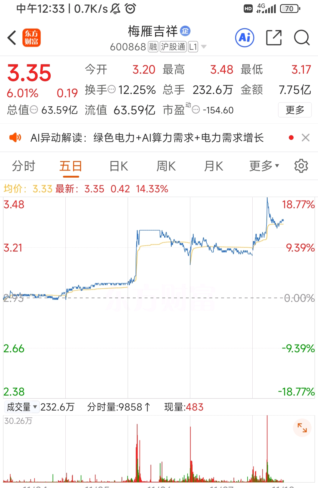 $梅雁吉祥(SH600868)$ 五日图很完美,调戏做短线的,我们中长线就是看戏