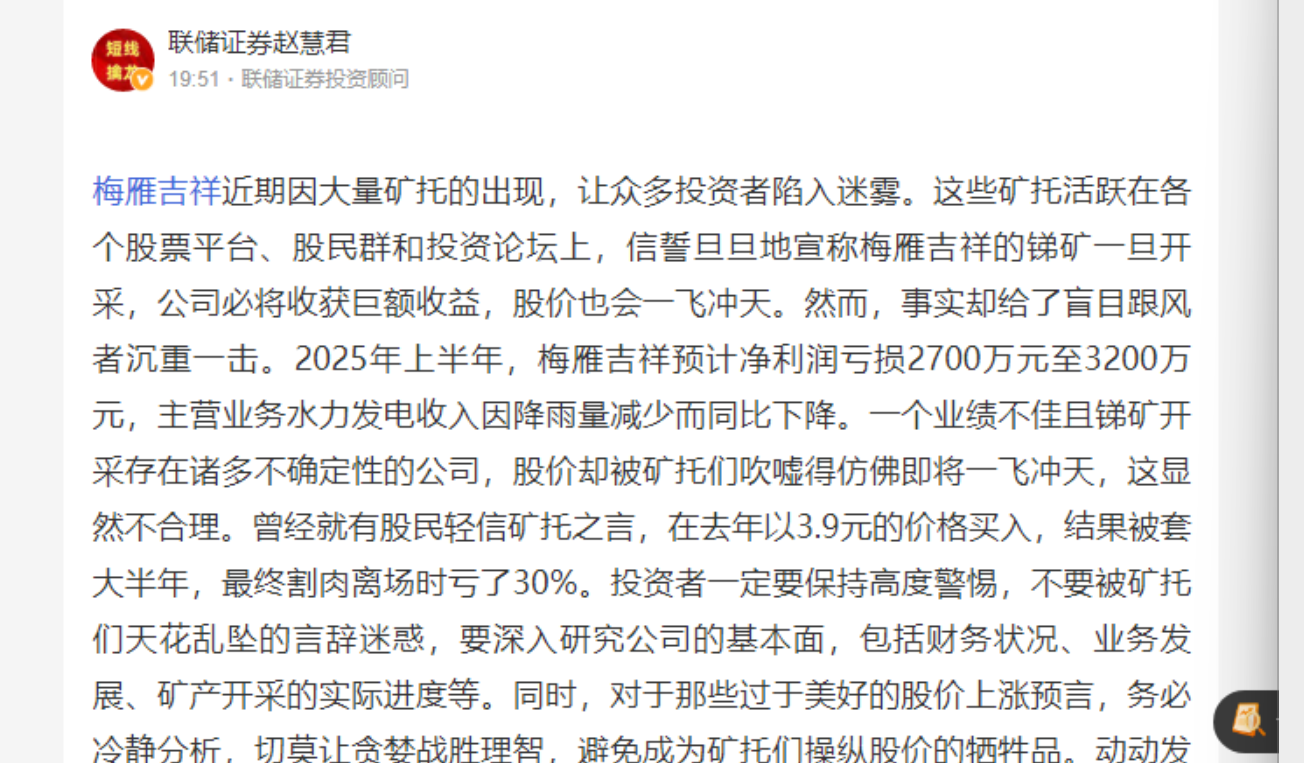 郑重声明:用户在财富号/股吧/博客等社区发表的所有信息(包括但不限于文字、视频、音频、数据及图表)仅代表个人观点,与本网站立场无关,不对您构成任何投资建议,据此操作风险自担。请勿相信代客理财、免费荐股和炒股培训等宣传内容,远离非法证券活动。请勿添加发言用户的手机号码、公众号、微博、微信及QQ等信息,谨防上当受骗!