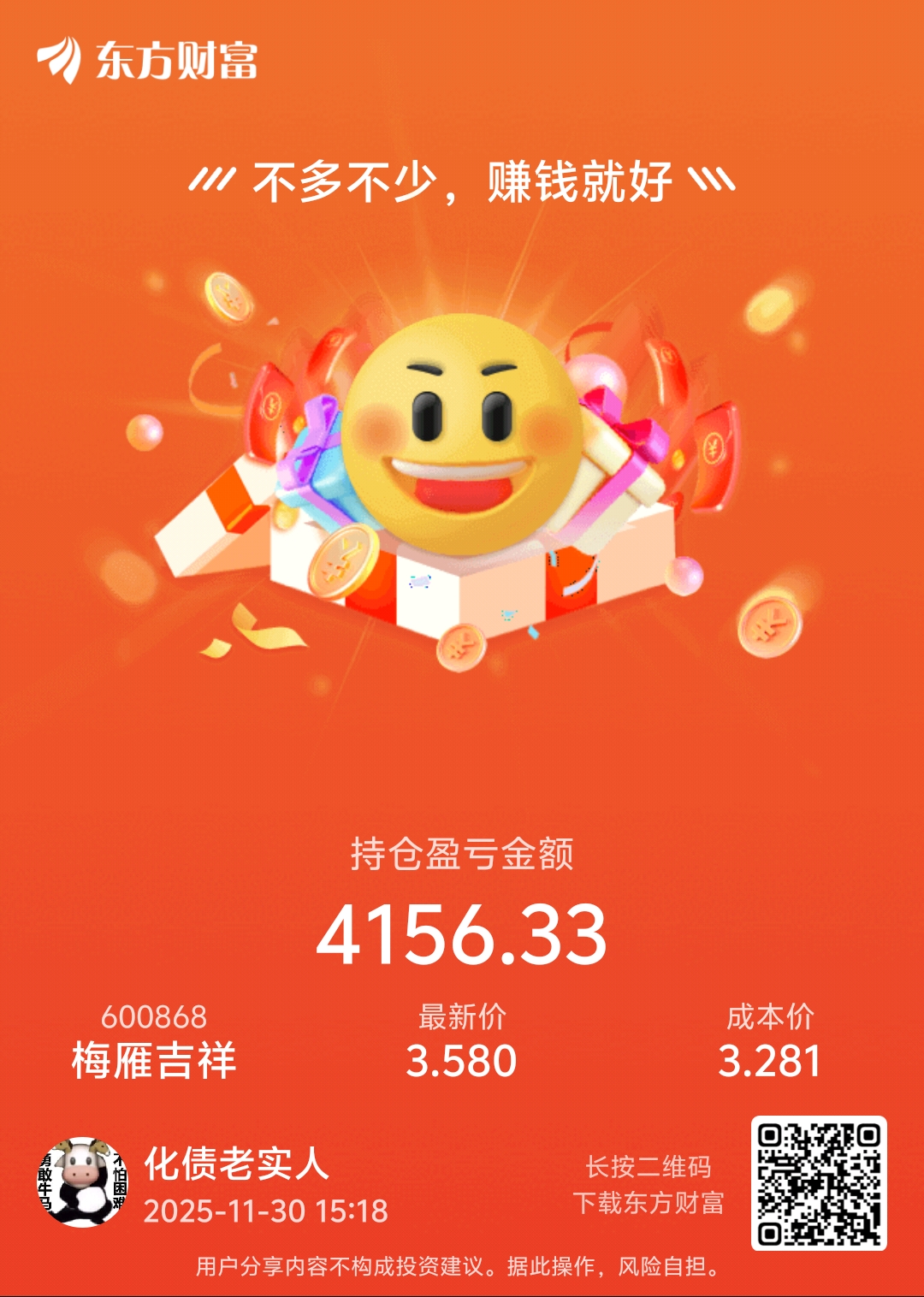 $梅雁吉祥(SH600868)$ 我是小学生,下周让我先走