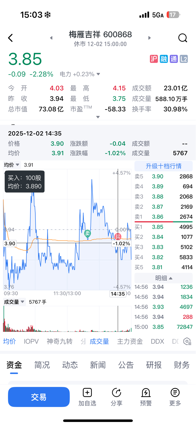 水下3.91全仓卖出去了,吃了20个点的收益。没想到我刚卖出就拉了一波小的,少吃了三四个点,不过我今天肯定会卖的,主力这么拉高出货,不卖就说不过去了。3.89买回了100股算是一个底仓吧,明天打到五日线买回四成仓。#炒股日记#