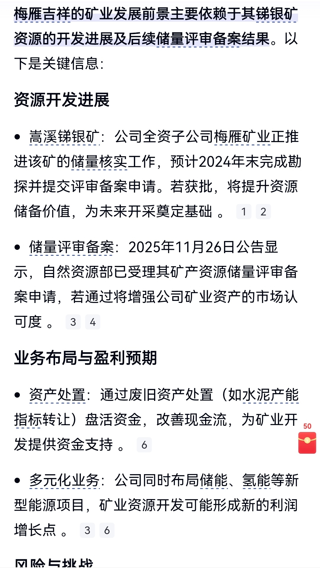 $梅雁吉祥(SH600868)$ 【梅雁吉祥】在矿业开发上有着广阔的发展前景:梅州地区矿产资源丰富,充满着想像力,且己在行动实施中。