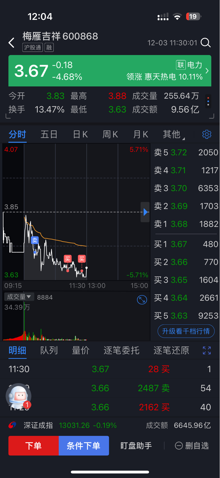 $梅雁吉祥(SH600868)$ 彻底跟你杠上了,卖完发现其他地方没想去的又回来了