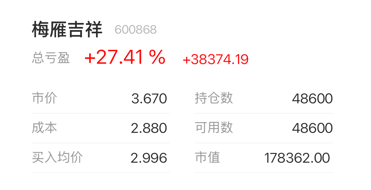 $梅雁吉祥(SH600868)$