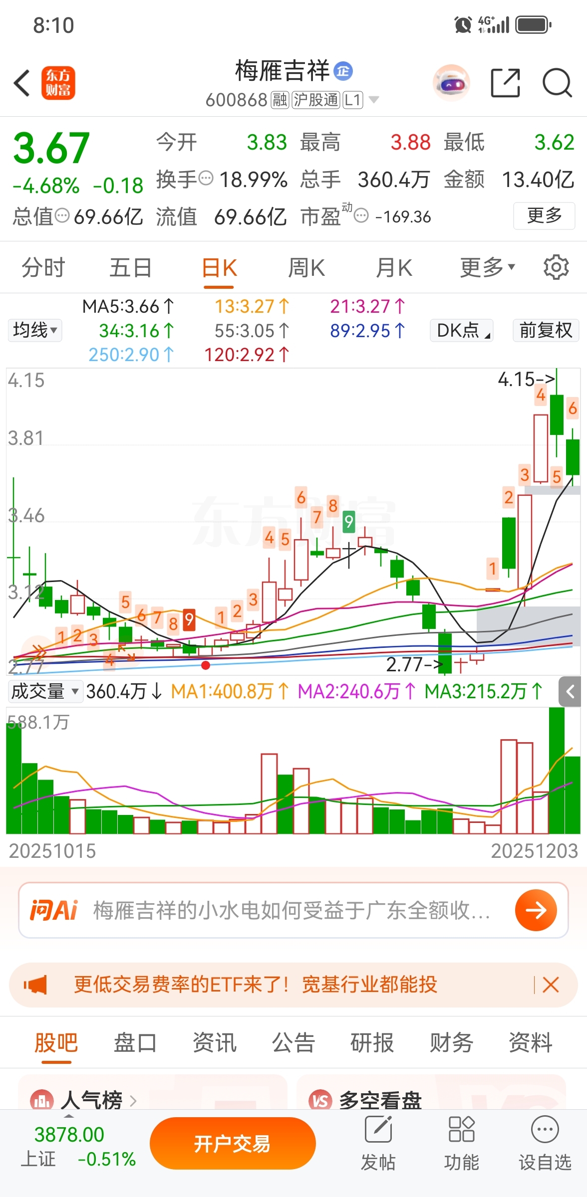 $梅雁吉祥(SH600868)$ 上波调整五连阴,那么问题来了,这波调整会破纪录吗?