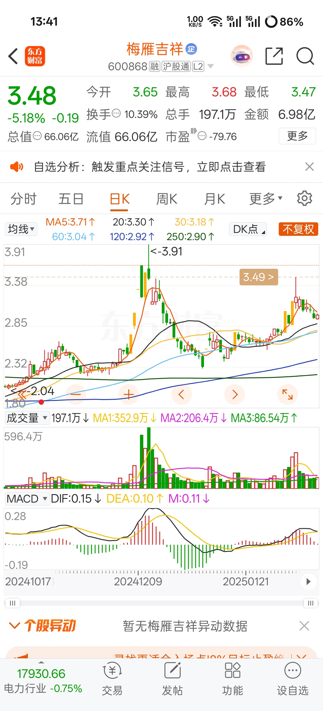 $梅雁吉祥(SH600868)$ 看看去年12月,也和现在一样的走势,大家都知道什么结果了吧