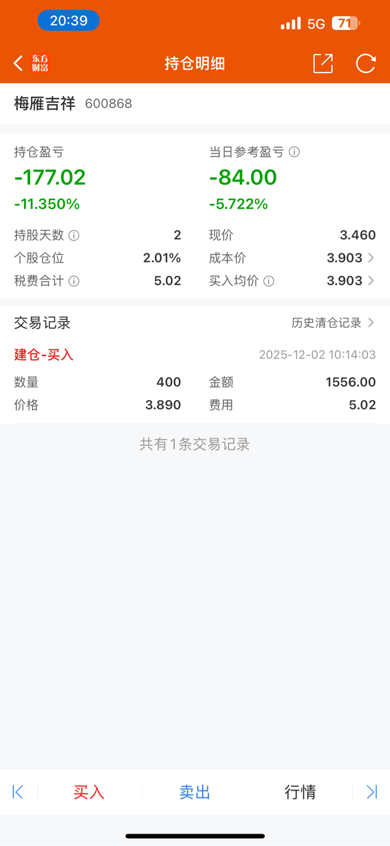$梅雁吉祥(SH600868)$ 手痒,没多少钱随便点了一下,刚刚一看怎么那么惨?