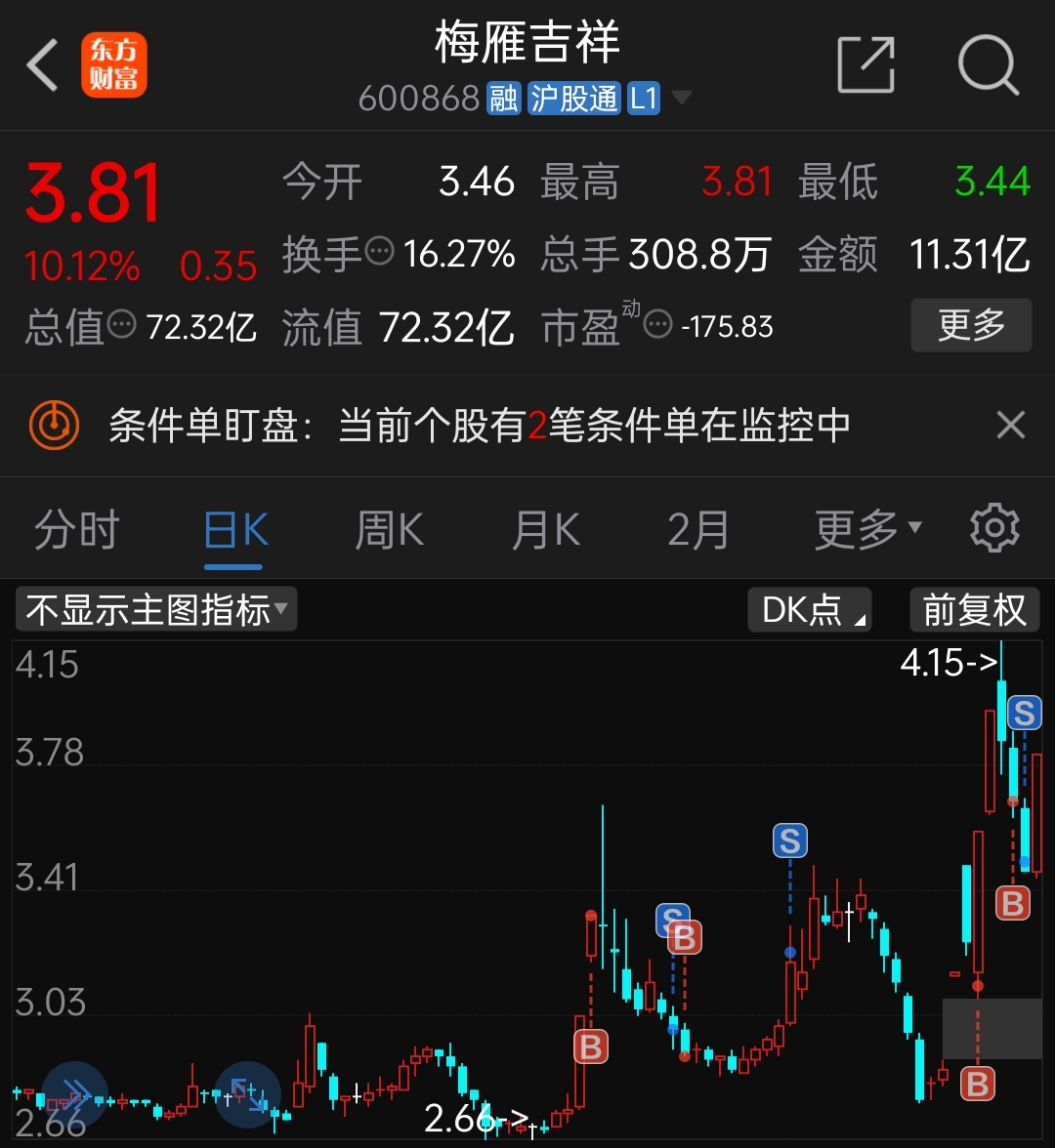 昨天打到我加仓仓位的止损了,本来打算今天找机会加仓的,没想到直接涨停