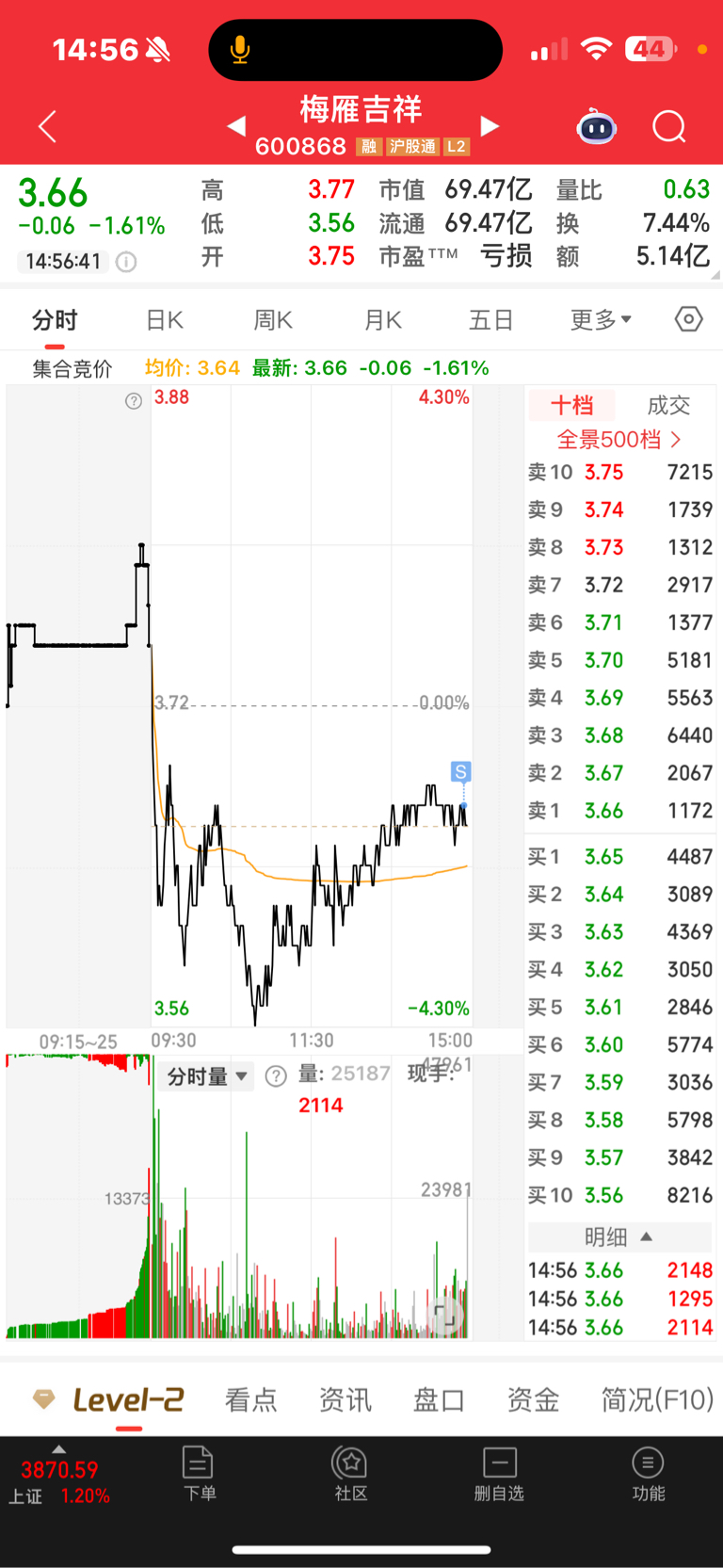 $梅雁吉祥(SH600868)$ 短线交易从不格局886