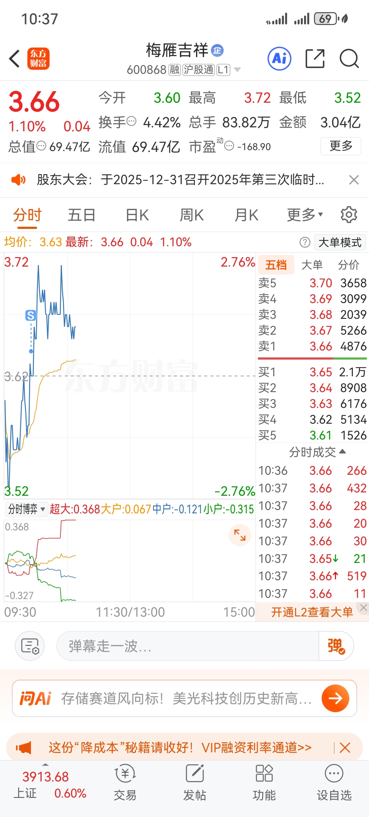 $梅雁吉祥(SH600868)$ 吓我一跳,还以为卖飞了,就这哈哈