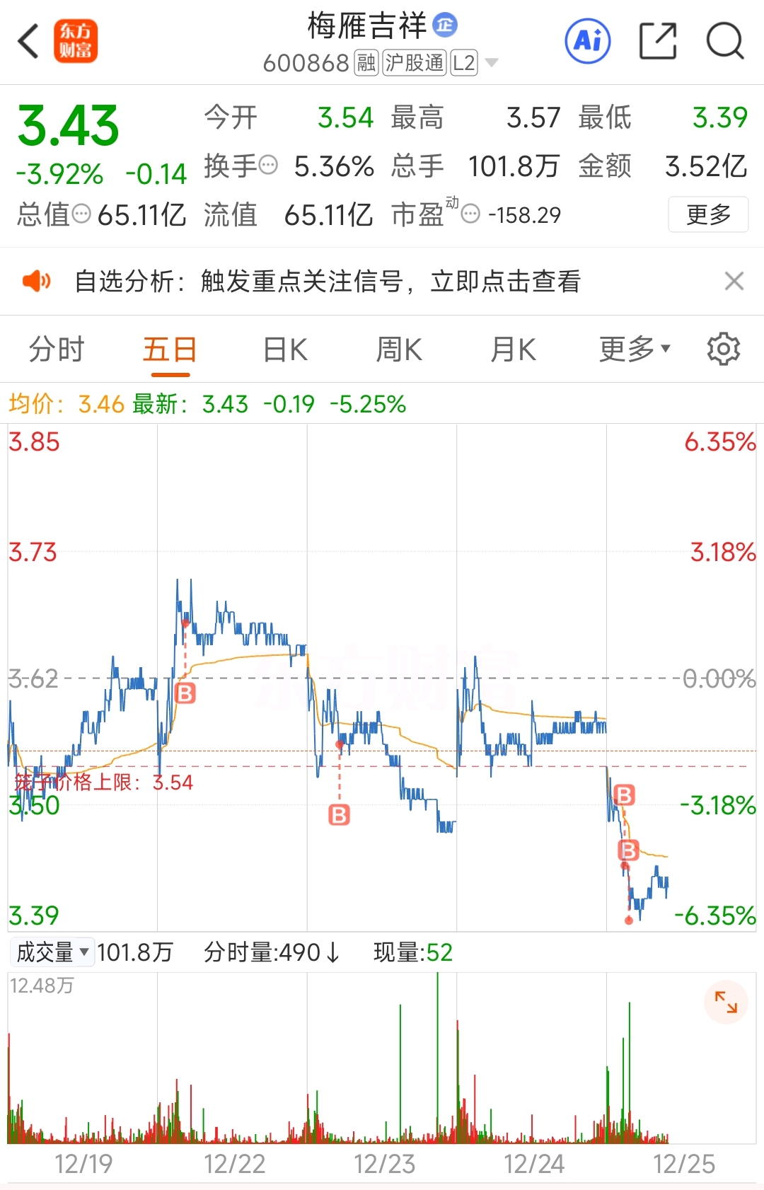 $梅雁吉祥(SH600868)$ 昨天有盈利没走, 今天又被套, 这个股红了就得走