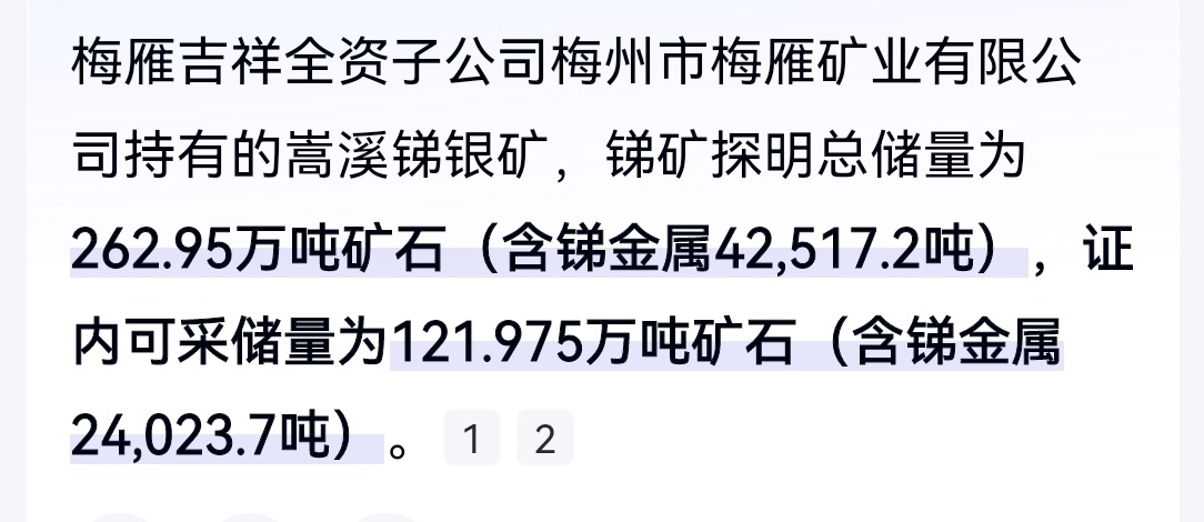 $梅雁吉祥(SH600868)$ 目前锑储量不是占全球二百多万吨近百分之二吗