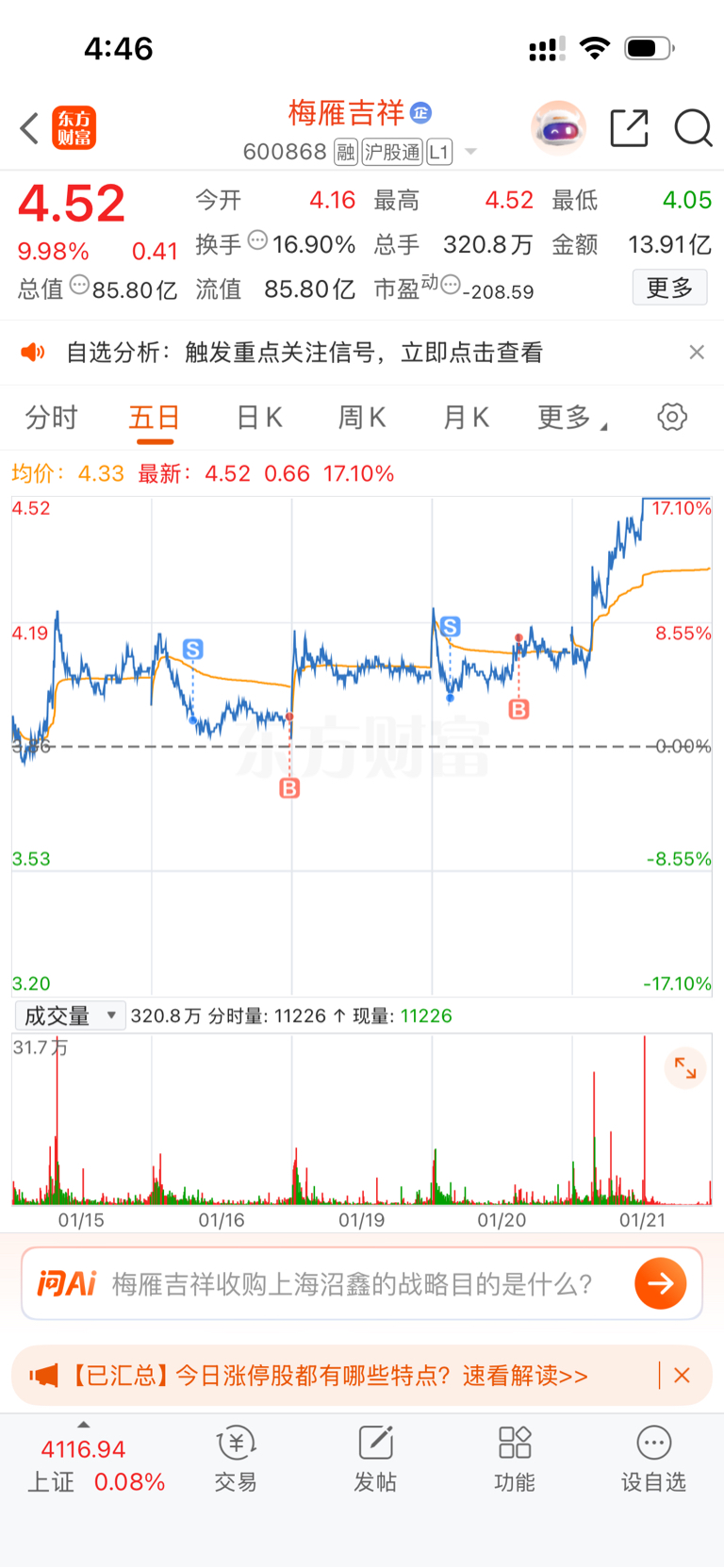 $梅雁吉祥(SH600868)$ 笑我是人才,天天做反T