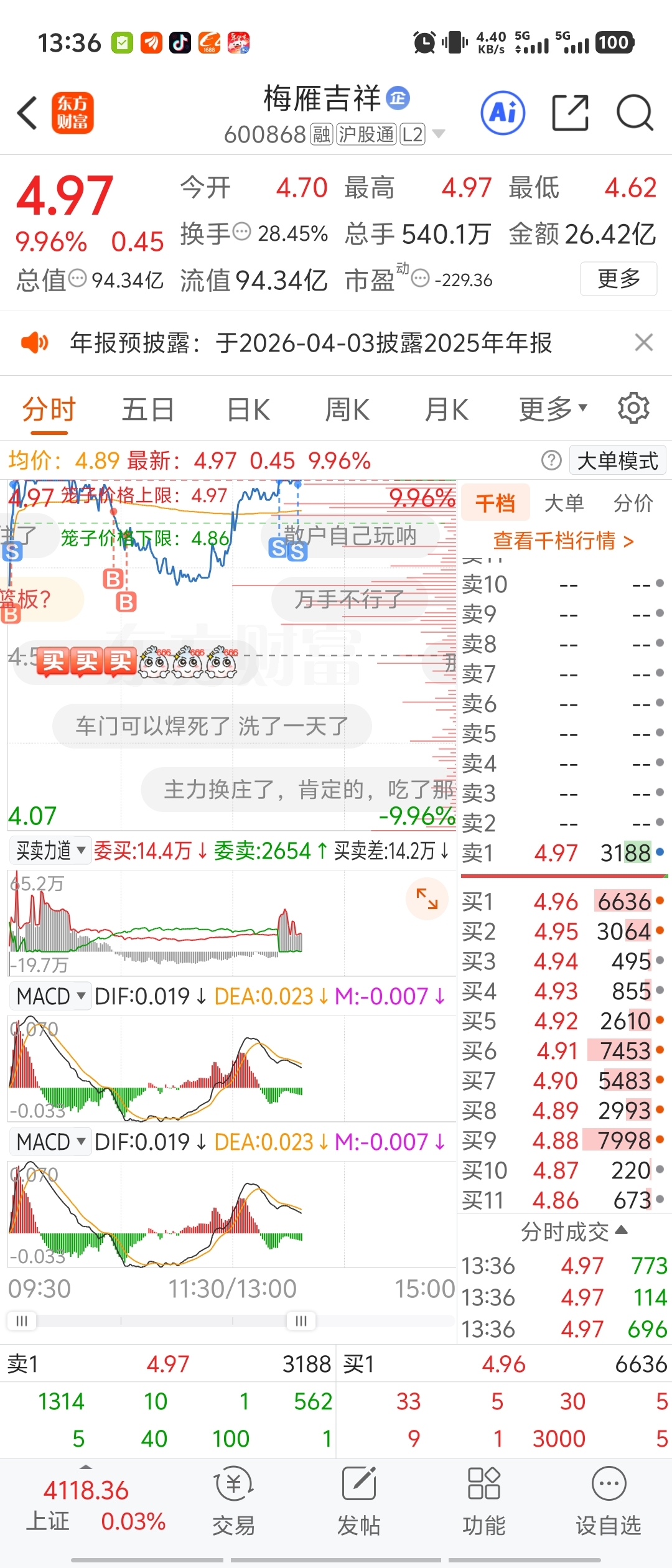 $梅雁吉祥(SH600868)$ 你让我老是t搞得我都盈利50个点了,你这样搞得我咋弄。