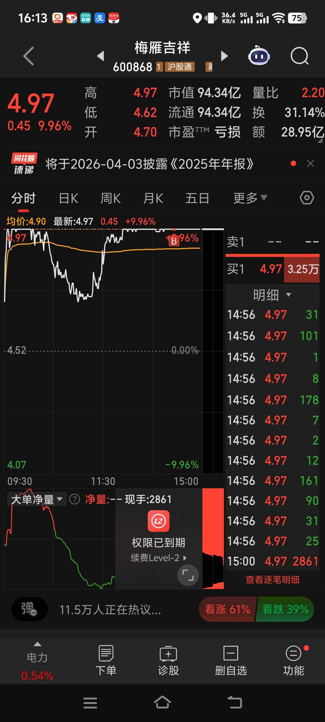 $梅雁吉祥(SH600868)$ 完了,龙虎榜上又是作手新一,明天直接跌停了,有没有同车的,你们怎么看