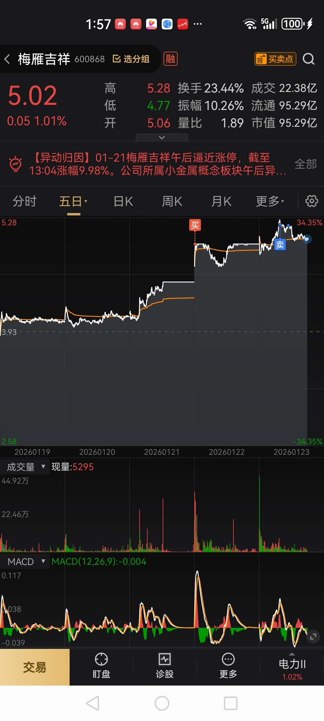 $梅雁吉祥(SH600868)$ 打板进的,有几个点收入可以了,主力你可以拉了