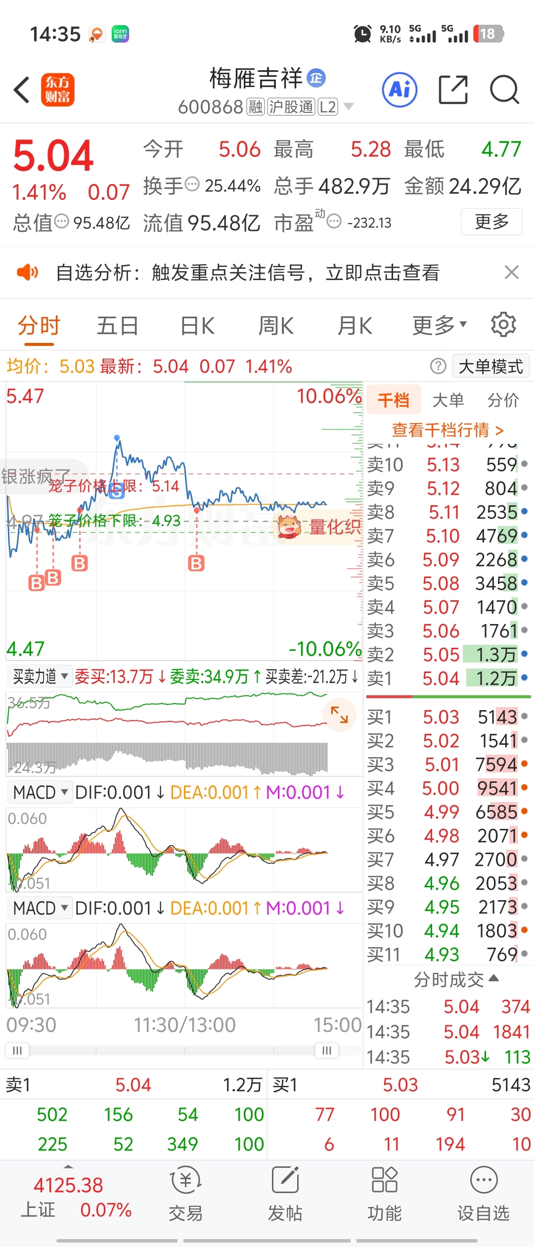 $梅雁吉祥(SH600868)$ 周一继续干。