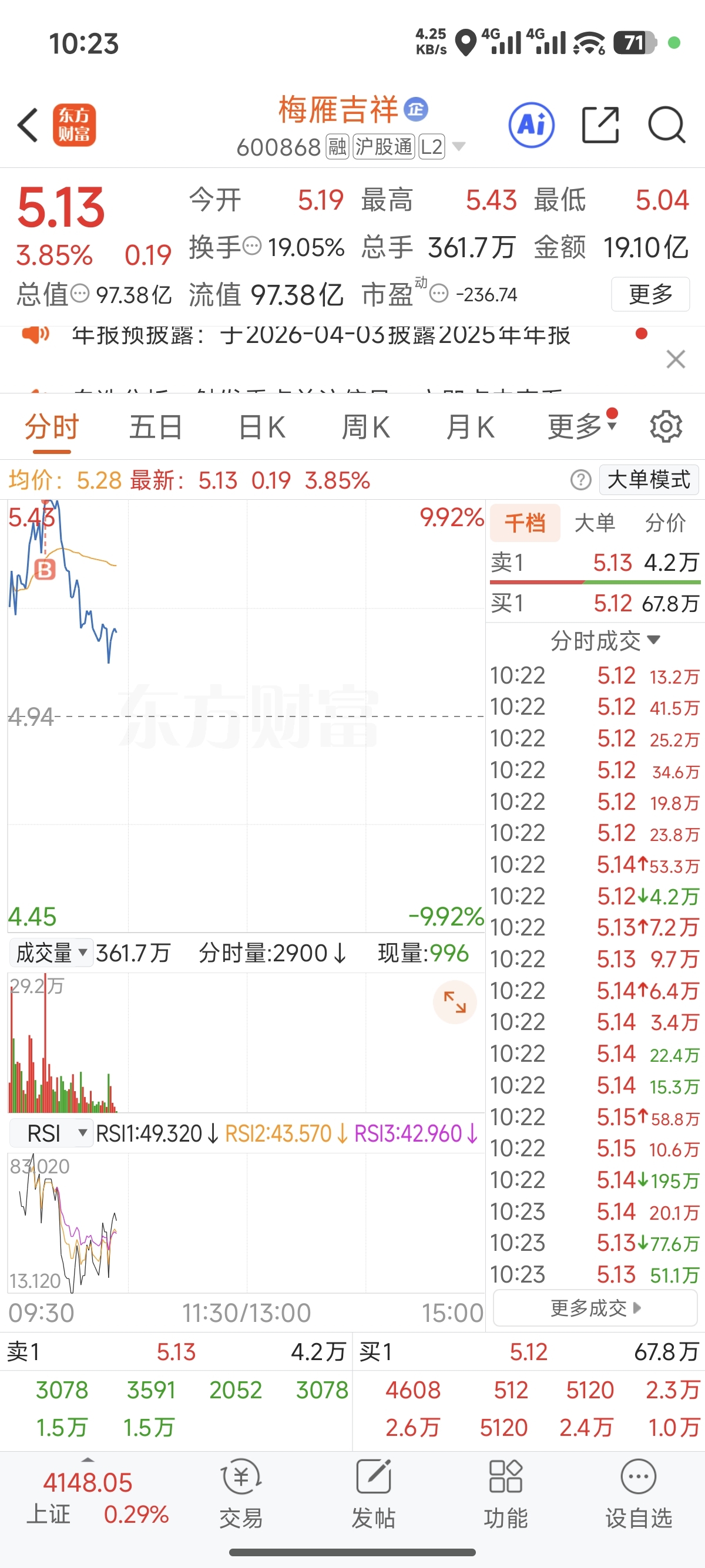$梅雁吉祥(SH600868)$