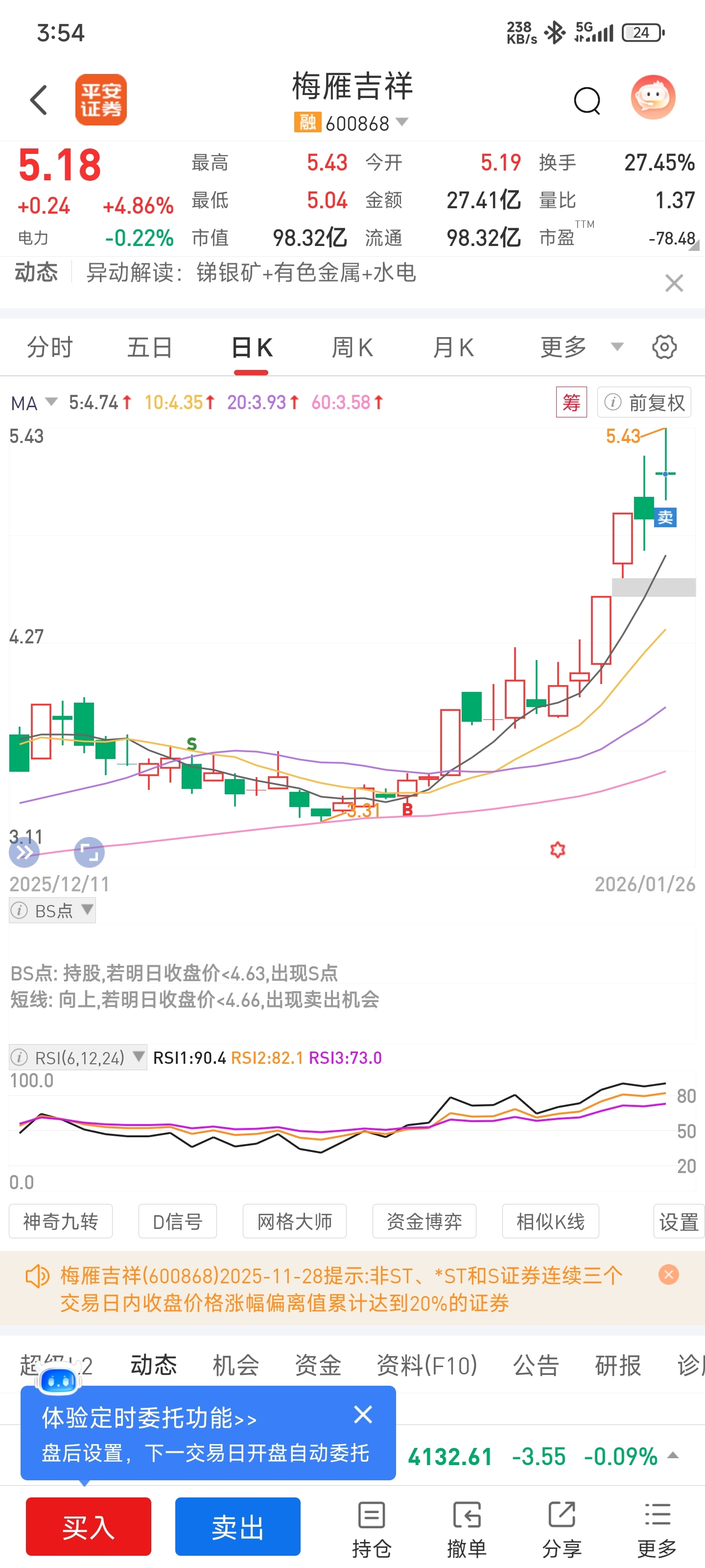 $梅雁吉祥(SH600868)$ 韭皇们虽然昨天我走了。但是你们要坚信涨停连板会来的。如果连你们都放弃了,这股还会有希望吗。