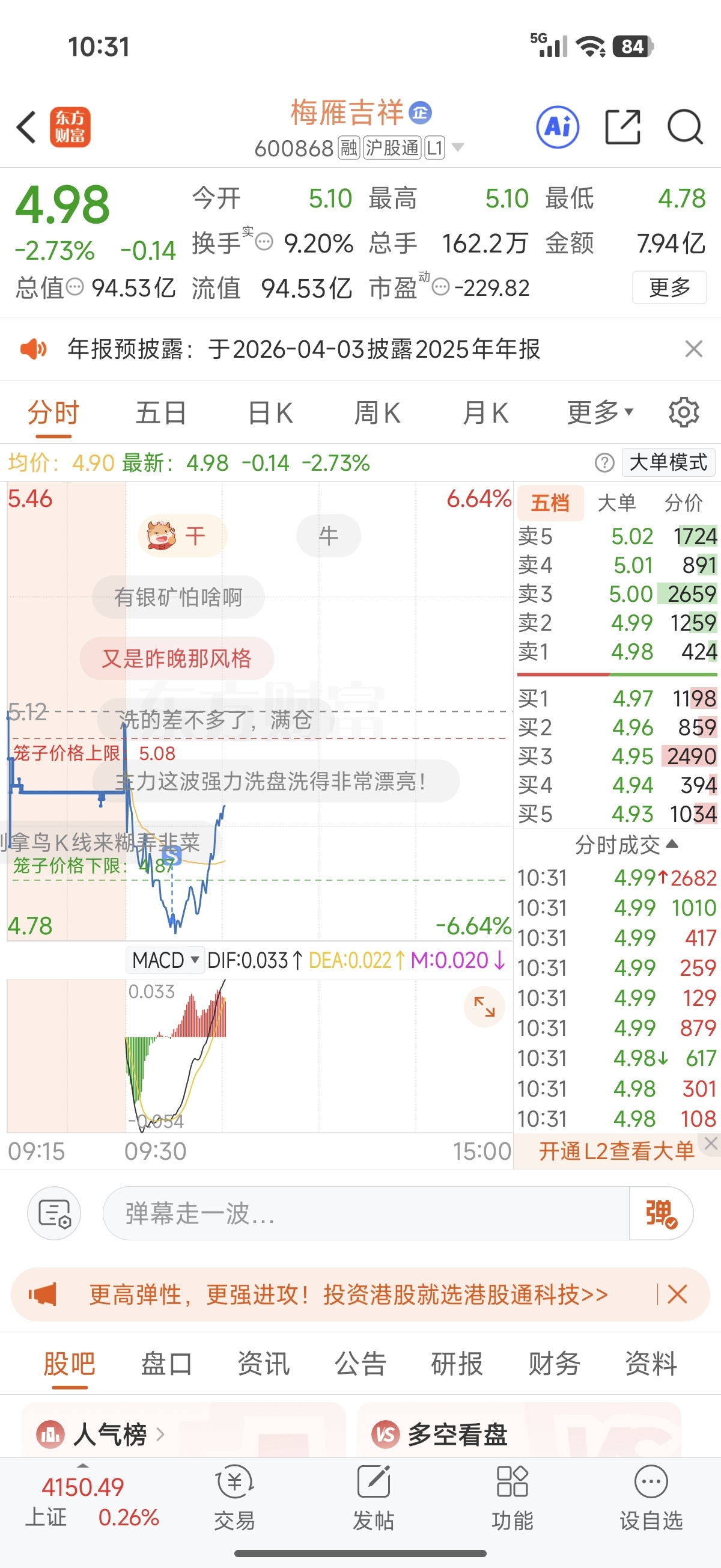 $梅雁吉祥(SH600868)$ 十点战法