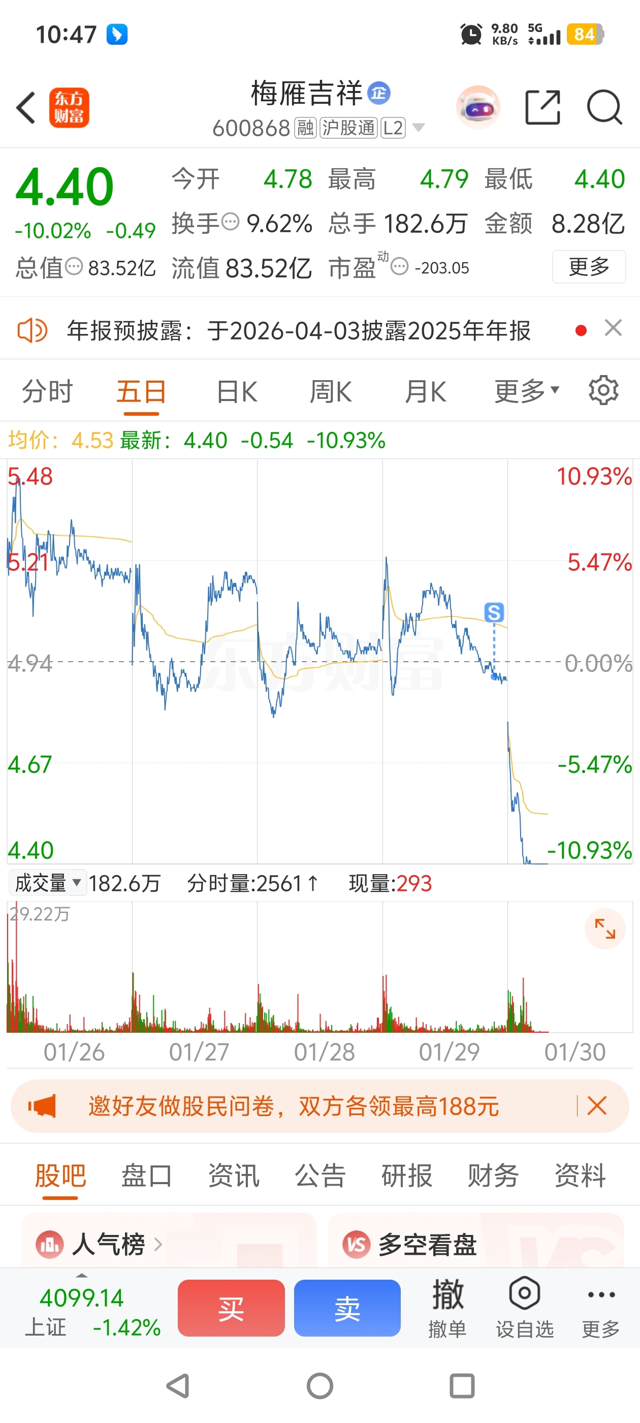 $梅雁吉祥(SH600868)$ 还好昨天清仓跑了